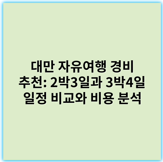 대만 자유여행을 계획할 때, 일정에 따라 방문하는 장소와 예상 경비가 달라집니다. 2박 3일과 3박 4일 일정은 각기 다른 특징과 경비 구성을 가지므로, 체류 기간에 맞춰 적절한 계획을 세우는 것이 중요합니다.
