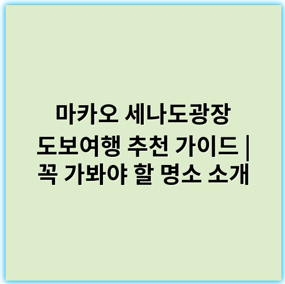 이처럼 세나도광장을 중심으로 한 도보 여행은 마카오의 역사와 문화를 자연스럽게 만나는 좋은 기회가 될 것입니다. 편안한 신발과 카메라를 챙기시고, 느긋하게 걸으며 다양한 경험을 즐겨보세요.