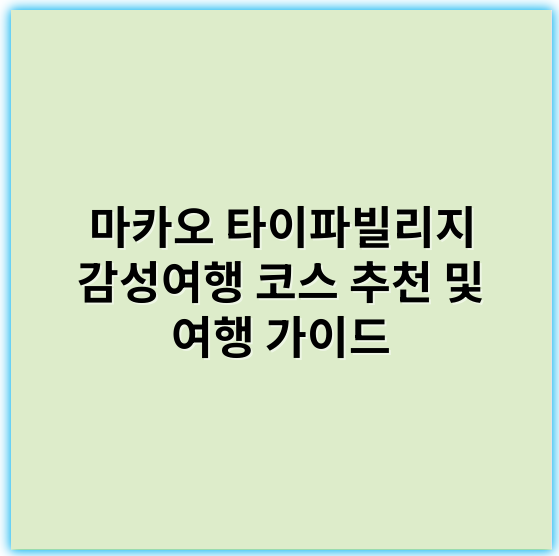 마카오 타이파빌리지 감성여행 코스는 전통과 현대가 어우러진 특별한 여행지로, 도시의 번잡함을 떠나 조용하고 아기자기한 분위기를 만끽할 수 있는 최적의 장소입니다. 고즈넉한 골목길을 따라 다채로운 색채의 벽화와 아기자기한 카페들이 숨어 있어, 인생 사진도 남기고 힐링도 동시에 누릴 수 있습니다. 이번 가이드에서는 타이파빌리지의 핵심 명소들과 감성 가득한 여행 코스를 소개하며, 잊지 못할 마카오의 매력을 선사할 여행 계획을 도와드릴 예정입니다.