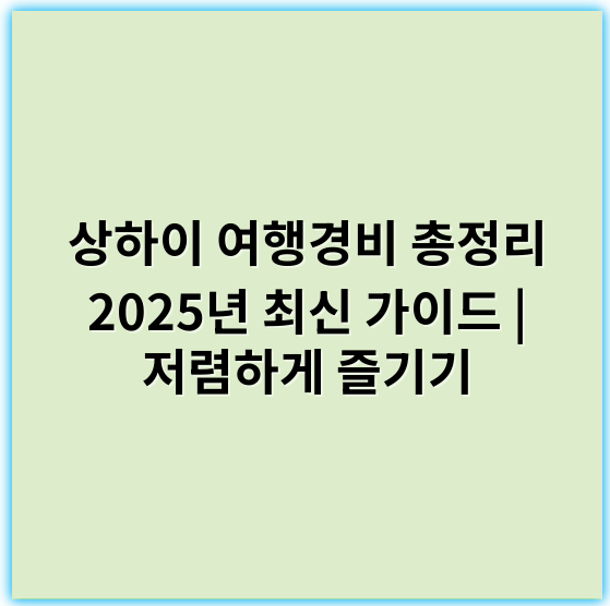 상하이 여행경비 총정리 2025년 최신 가이드 | 저렴하게 즐기기 - 경비