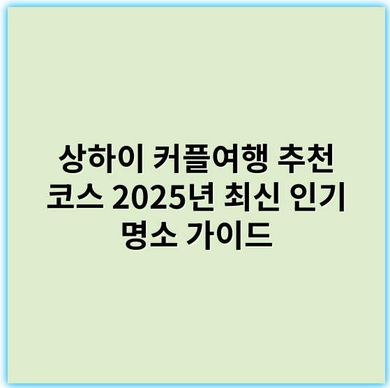 상하이 커플여행 추천 코스 2025년 최신 인기 명소 가이드 - 커플여행