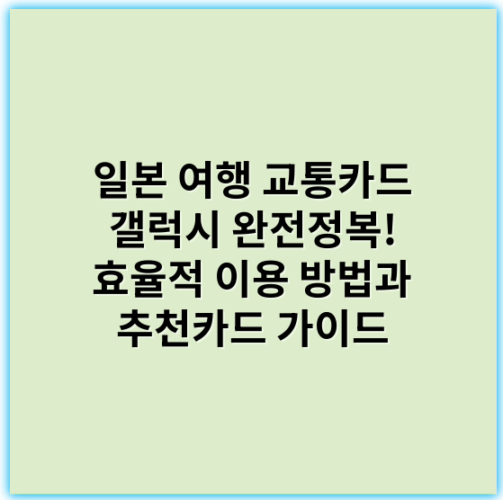 일본에서는 교통수단 이용 시 교통카드를 활용하는 것이 일반적이고 효율적이에요. 특히 ‘교통카드 갤럭시’는 일본 전역의 다양한 교통수단에서 사용할 수 있는 통합 교통카드로, 교토, 도쿄, 오사카 등 주요 도시에서 손쉽게 이용할 수 있어요. 이 카드는 대중교통은 물론 일부 편의점이나 시설에서도 사용 가능하며, 충전식으로 부담 없이 쓸 수 있다는 점이 매우 좋아요. 그렇기 때문에 여행자는 별도 교통권 구매 없이 간편하게 이동이 가능하답니다.