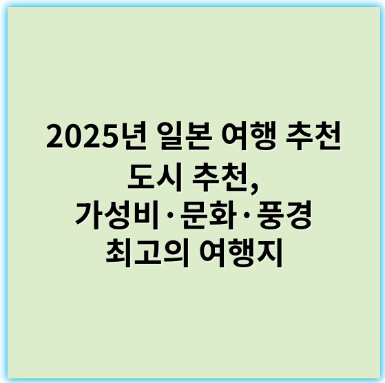 2025년 일본 여행 추천 도시 추천, 가성비·문화·풍경 최고의 여행지 - 일본 여행 도시 추천의 핵심 키워드: "도시"